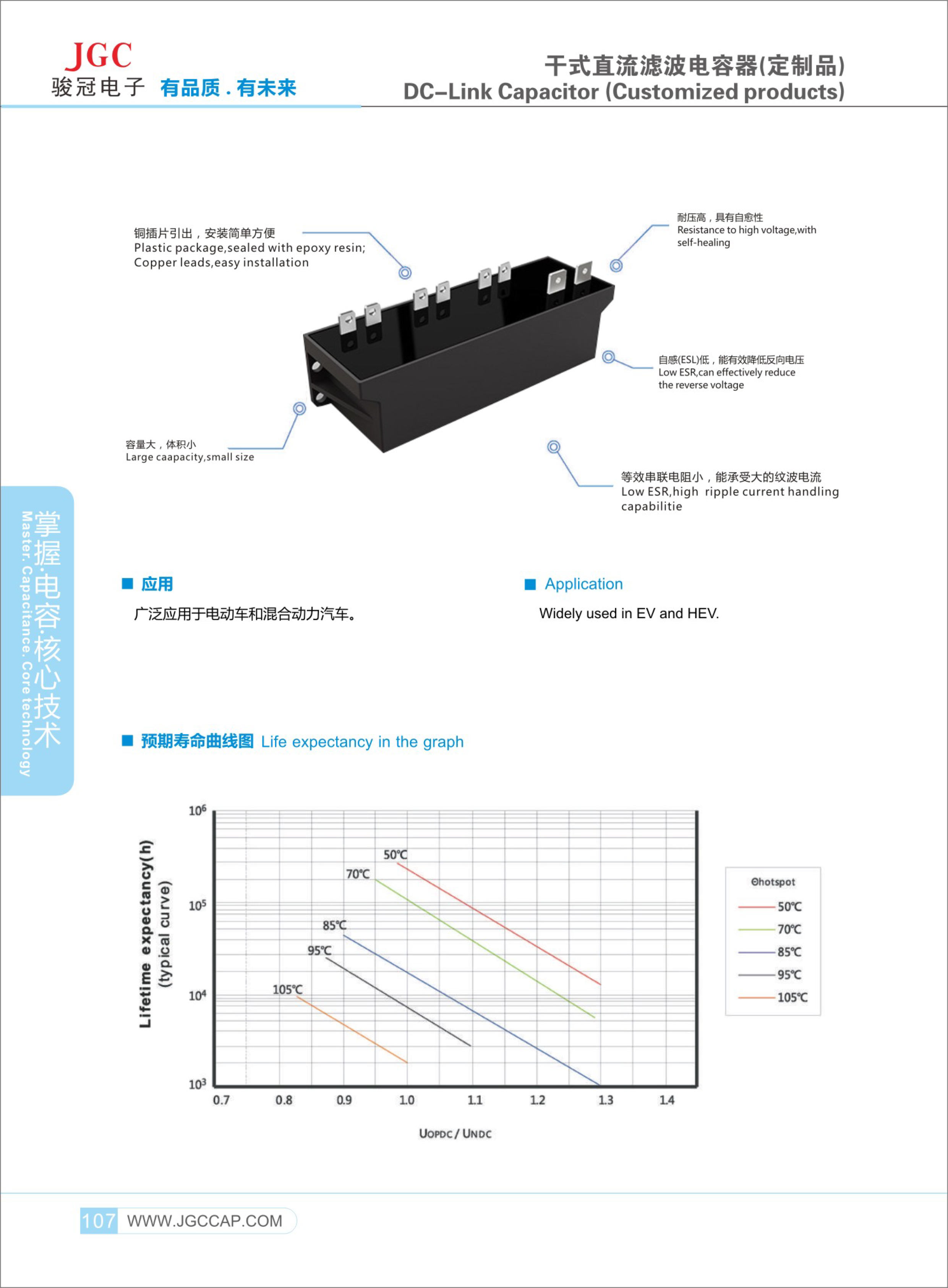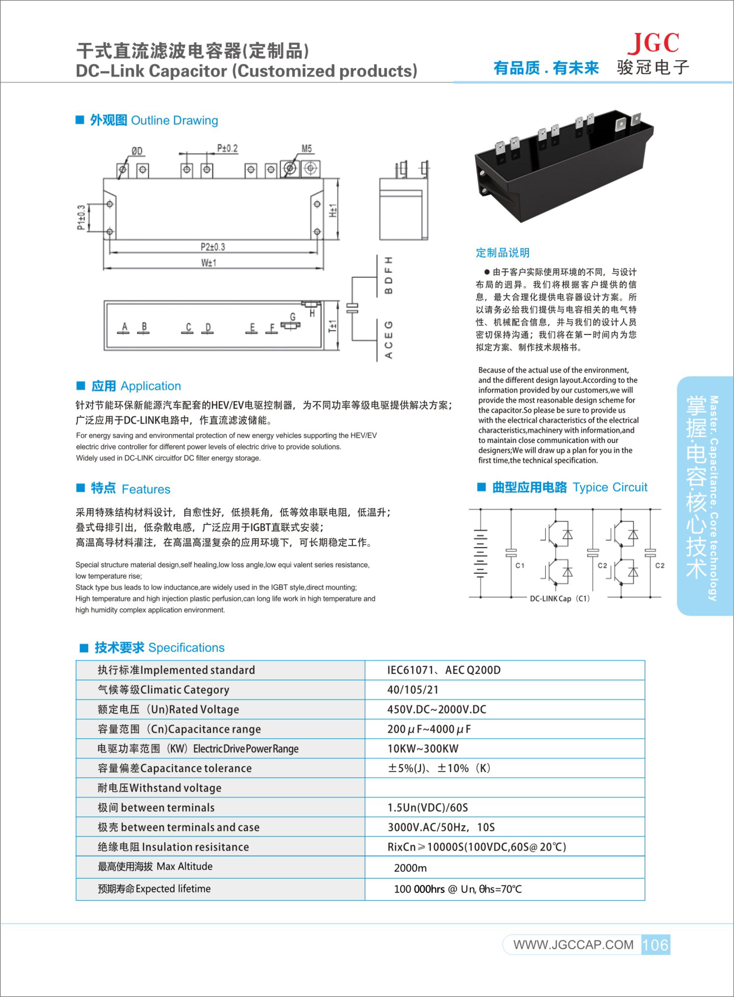8,電容器額定電壓范圍 500VDC~2000VDC, 容量范圍 200UF~2000μF,可以為10KW~300KW 不同功率等級的EV/HEV 電驅(qū)控制器 提供 電容 解決方案。